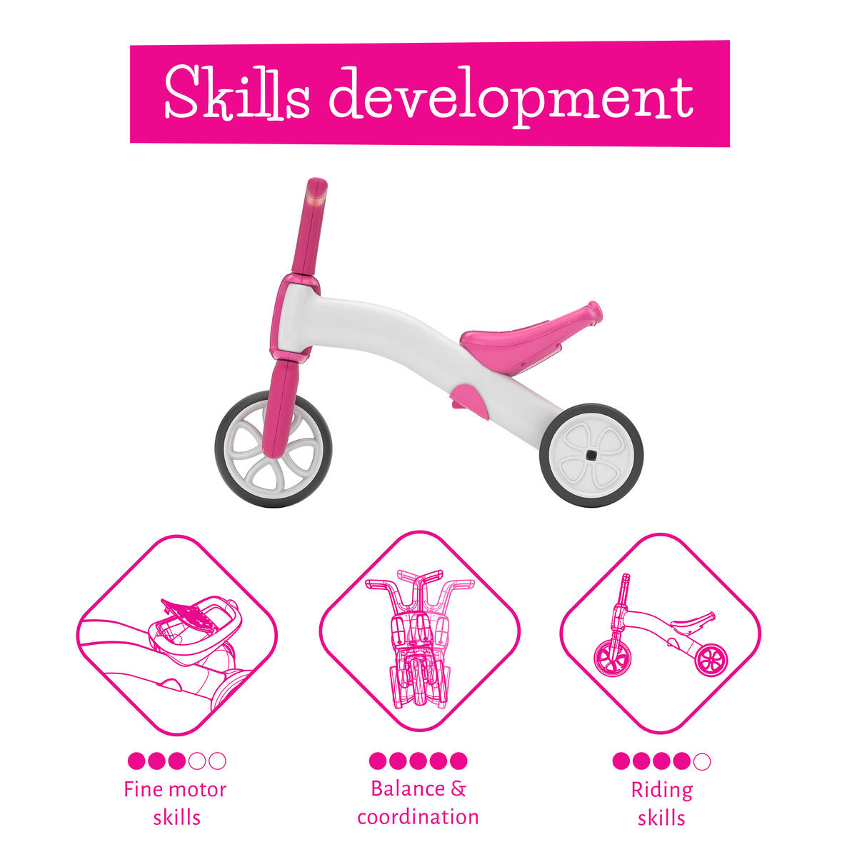 Lorsque votre enfant grandit et se sent suffisamment en confiance pour passer en mode 2 roues, l'assise ajustable s'adapte à sa taille et sans utiliser d'outils, pour mieux le soutenir et l'encourager dans l'apprentissage de nouvelles compétences.