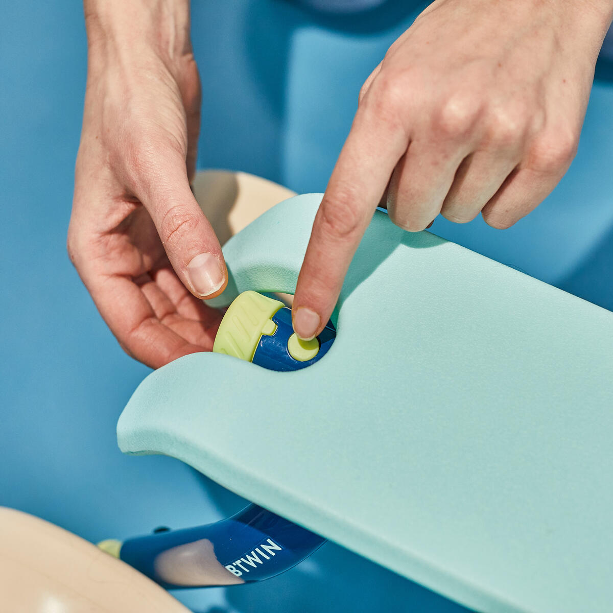 La forme arrière de la selle facilite la montée et la descente. Elle est volontairement longue pour que l'enfant puisse se positionner plus ou moins proche du guidon selon sa préférence.