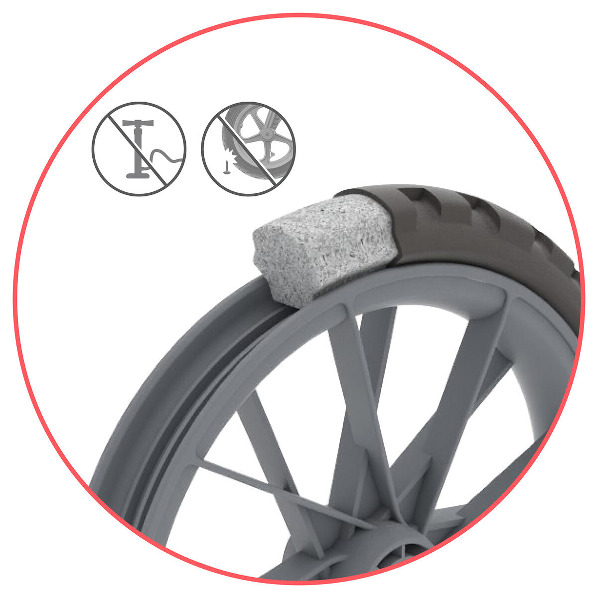Les pneus Airless Rubber Skin apportent une excellente adhérence à la route, et vous n'aurez jamais besoin de les gonfler. Les roues sont entourées d'un anneau plein en mousse ce qui fait qu'elles ne peuvent pas être perforées. La mousse est recouverte d'une couche en caoutchouc pour plus de durabilité, d’adhérence et de confort. Une très bonne adhérence à la route et nul besoin de les gonfler !