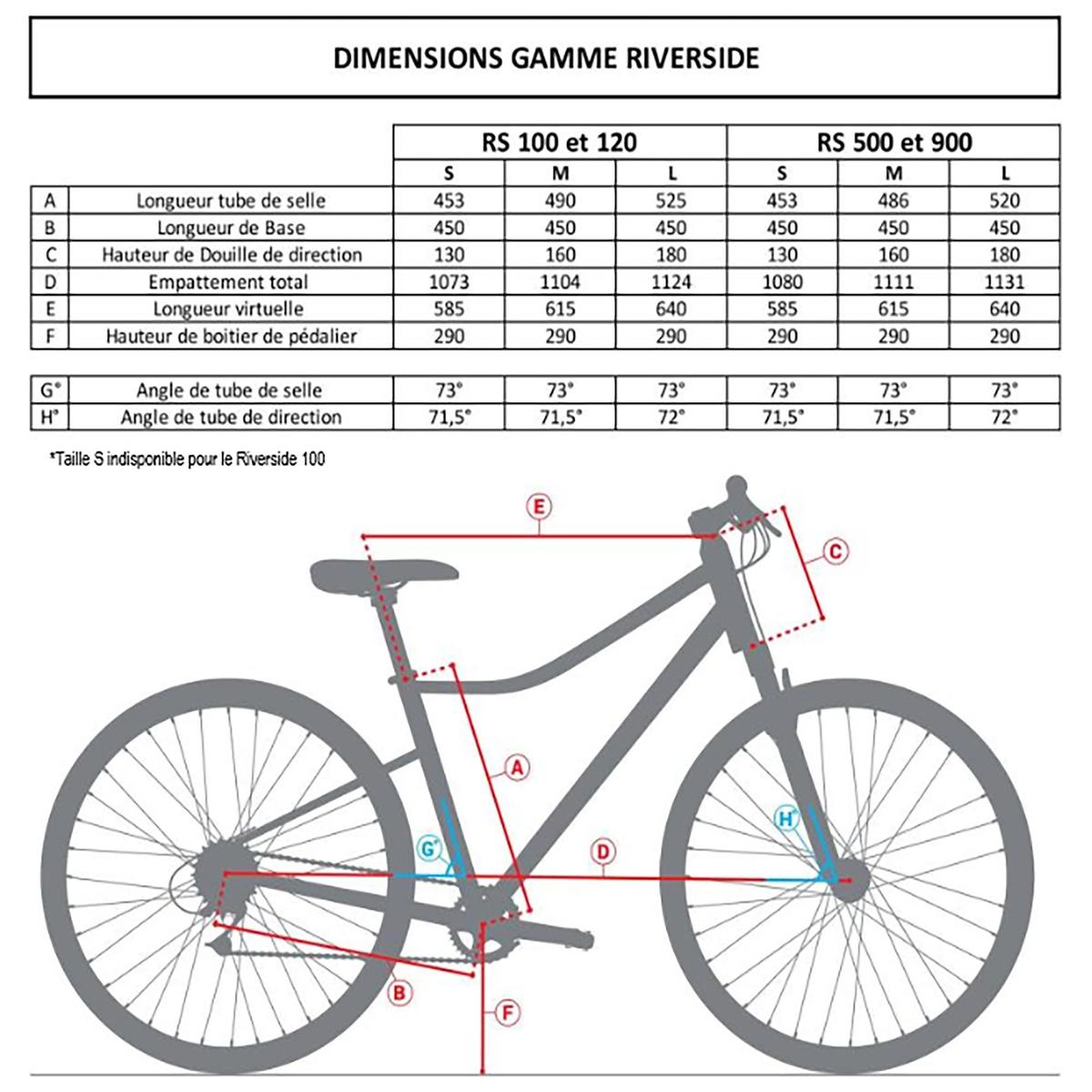 Le Riverside 120 est équipé de pneus polyvalents route et chemin BTWIN TREKKING pour vous accompagner n'importe ou.