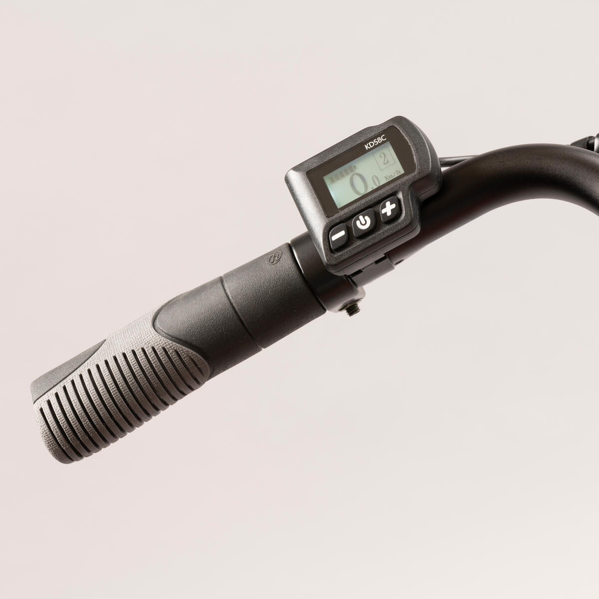 Une console de contrôle LCD, placée juste à côté de la poignée gauche, vous permet, sans lâcher votre guidon, de choisir facilement entre les 5 niveaux d'assistance disponibles et d'allumer ou éteindre les feux.