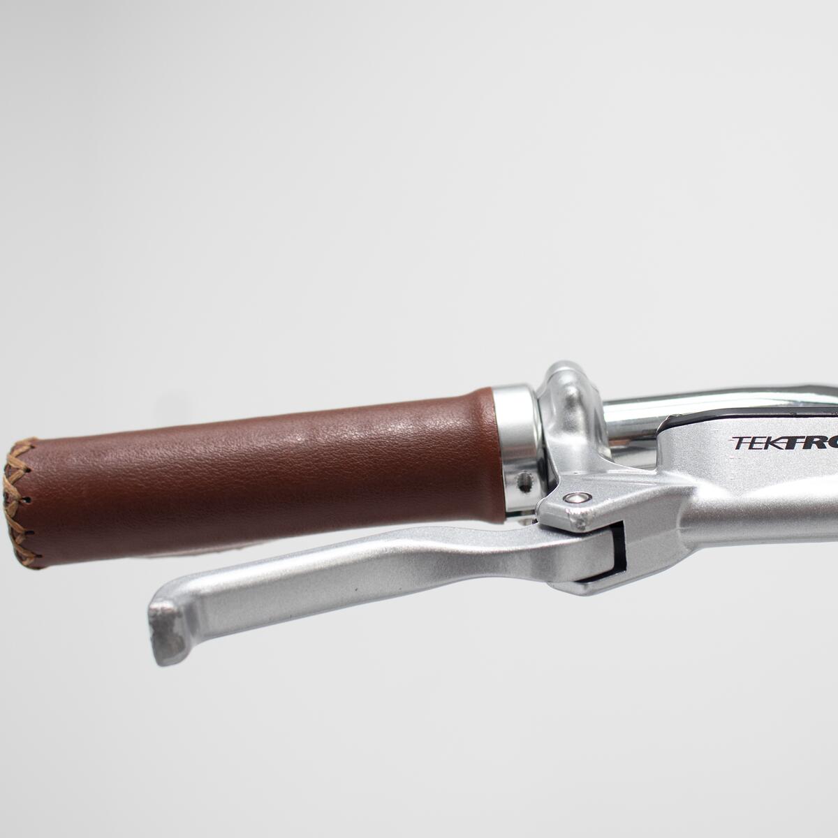 Poignées Cognac en simili cuir, avec repose-mains et coutures contrastantes Marron.