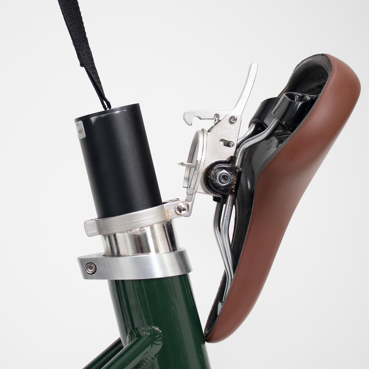 Pour ce faire, il faut déverrouiller la batterie à l’aide d’une clé (deux clés fournies avec le vélo), puis la retirer en faisant basculer la selle vers l’avant.