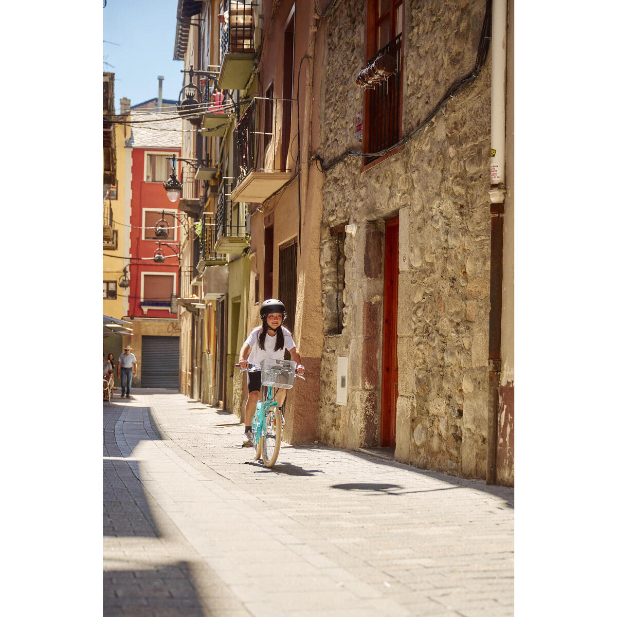 Nous avons conçu ce vélo ville, à l'enjambement bas, pour les enfants de 6 à 9 ans (120 à 135 cm) souhaitant se balader en ville et parc urbains.