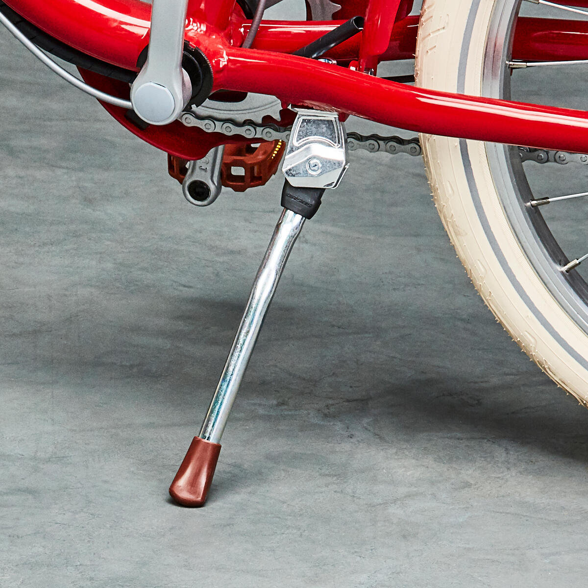 Egalement équipé d'un porte bagage, vous pouvez transporter vos petites affaires et quand vous êtes arrivés à destination, la béquille permet de stationner le vélo facilement.