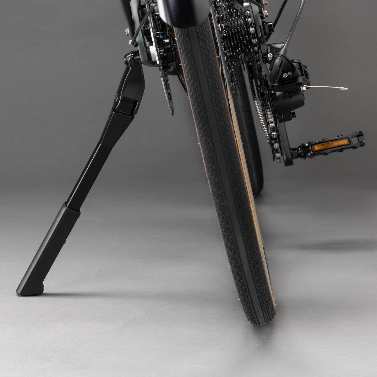 La béquille arrière en aluminium résistante à 35 kg de charge garantie une meilleure stabilité du vélo lorsque celui ci est chargé de sacoches sur le porte bagages.