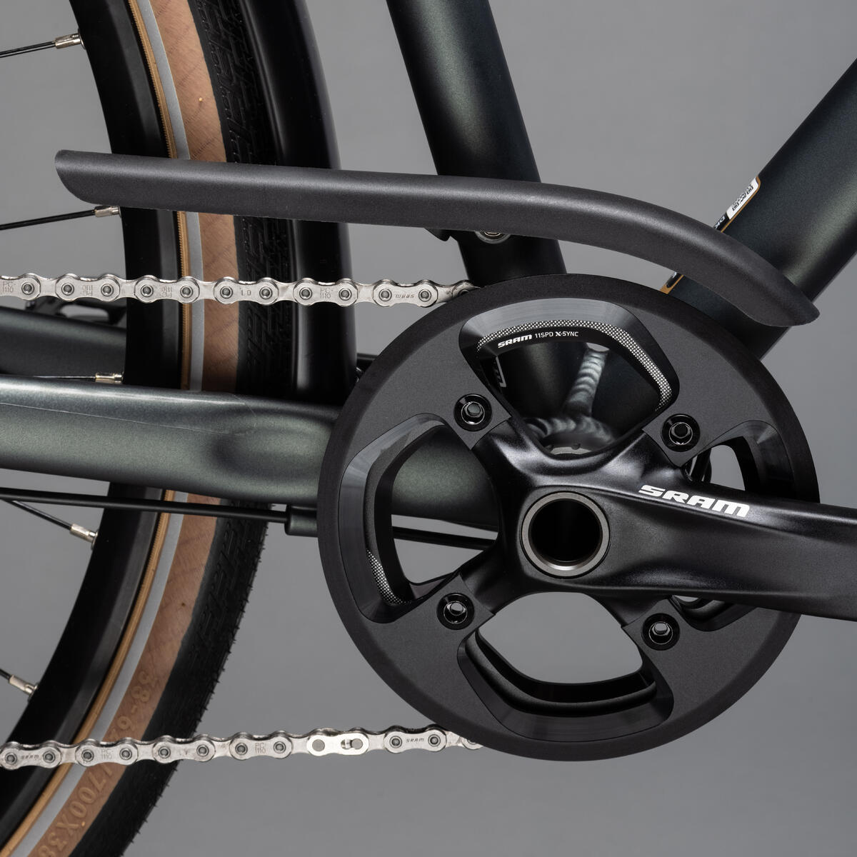 Afin de pouvoir transporter ses affaires et rester propre et sec en toutes circonstances, le vélo est équipé d'un ensemble porte bagages / garde boues dessinés exclusivement pour cette gamme de vélo.