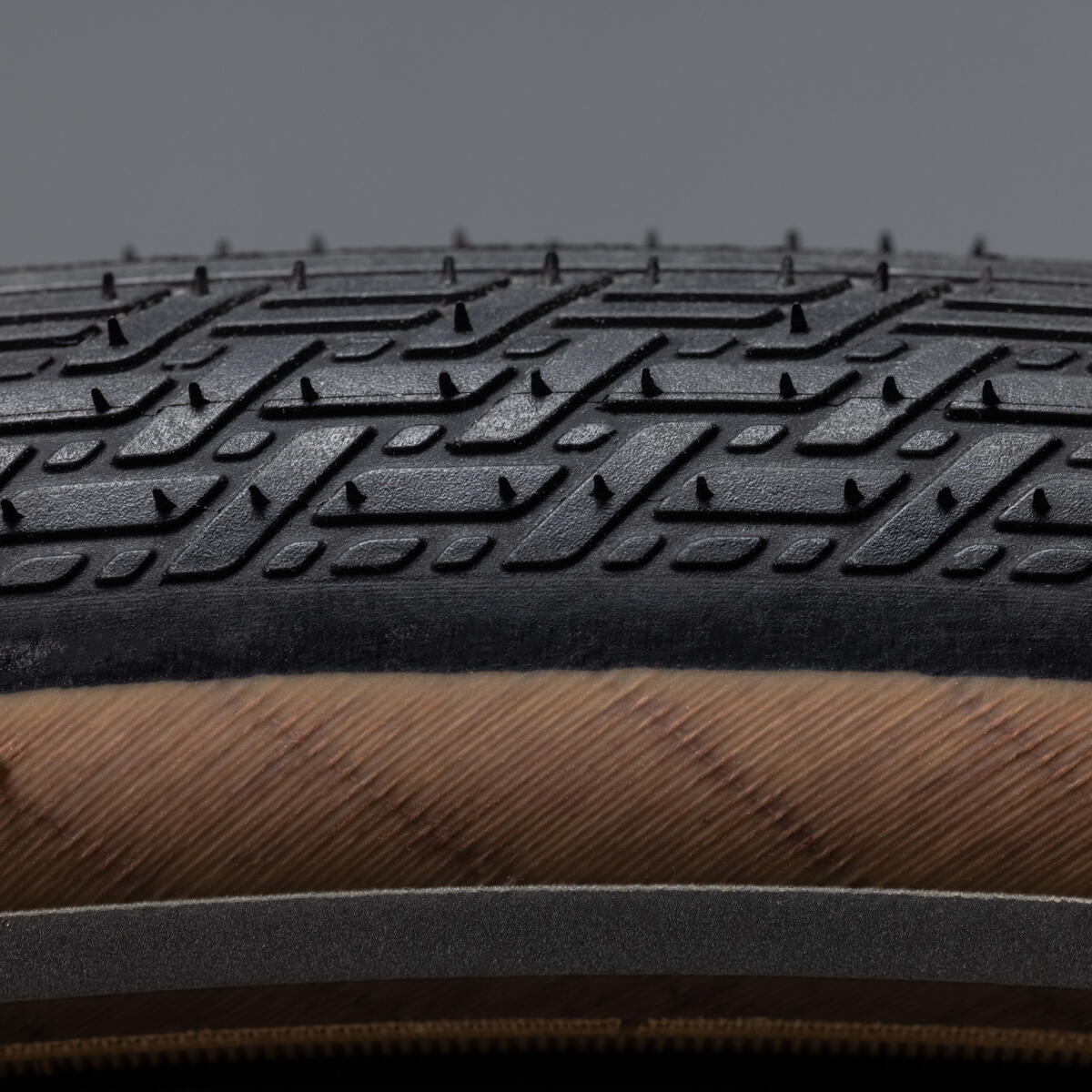 La bande anti-crevaison en Nylon "tringle à tringle"+ insert Kevlar, ainsi qu'une bande de "rubber" supplémentaire protège efficacement l'ensemble du pneu contre les crevaisons par percement et pincement.