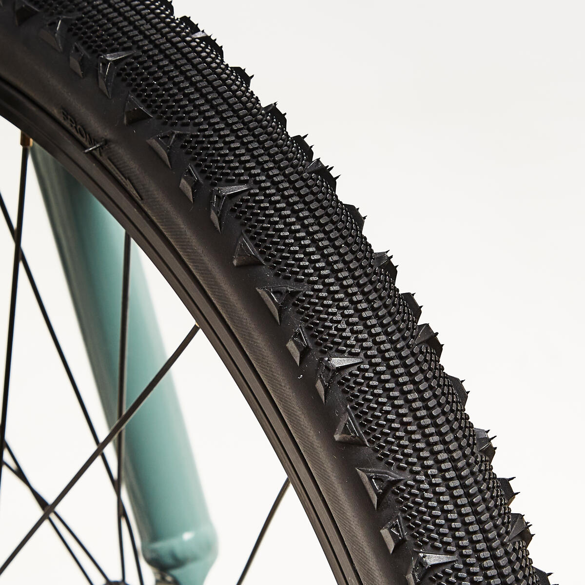 Ce vélo est équipé de pneus mixtes avec des crampons latéraux permettant de rouler aussi bien sur chemins que sur bitume. Chambre à air 20 pouces section 1,7 à 2,2, valve Schrader.