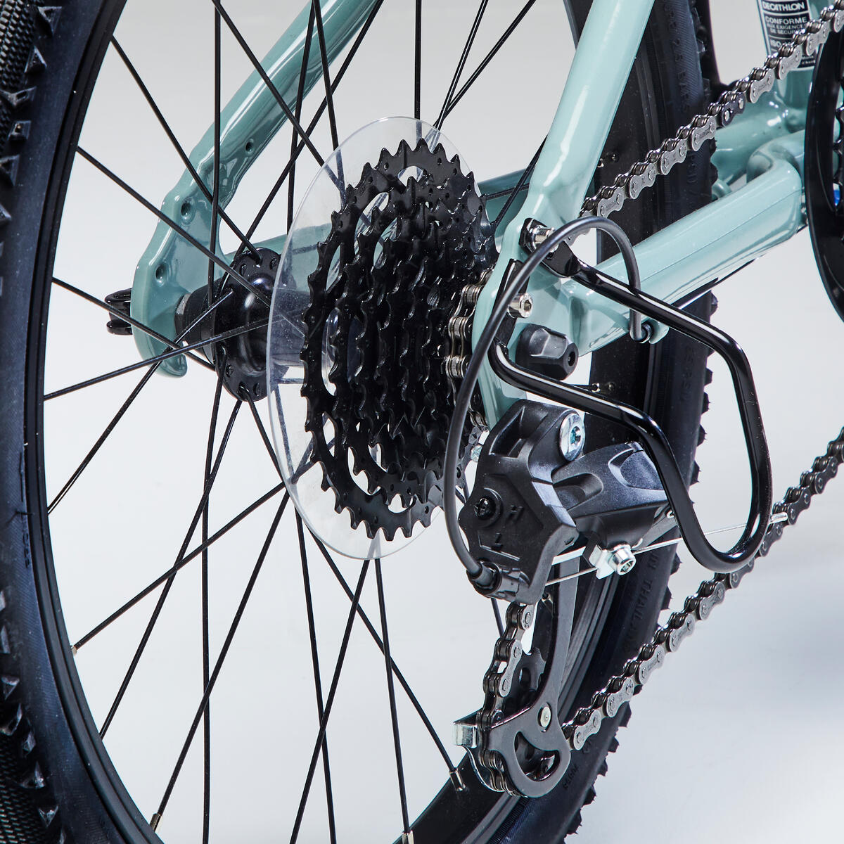 Ce vélo est équipé d'une transmission mono plateau.