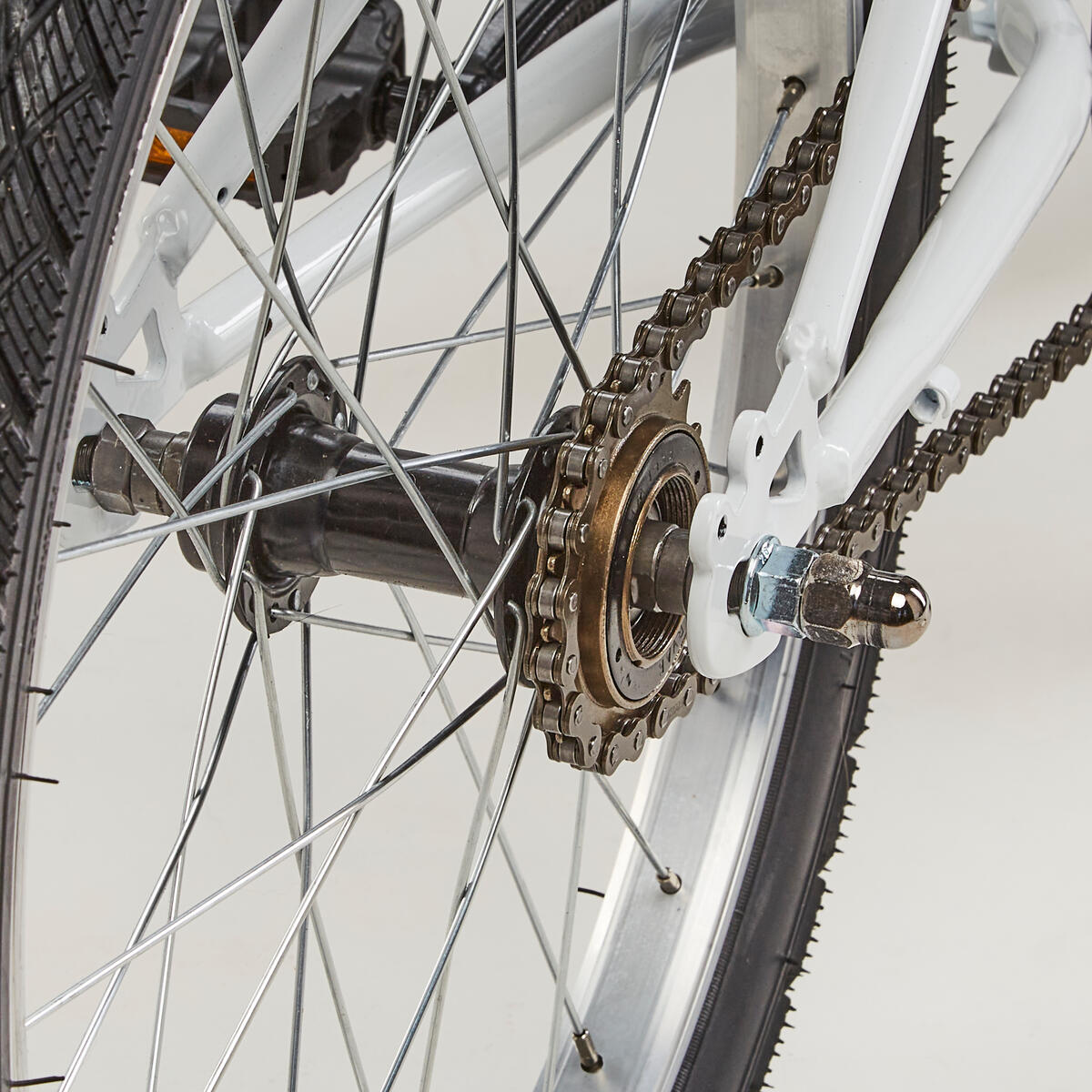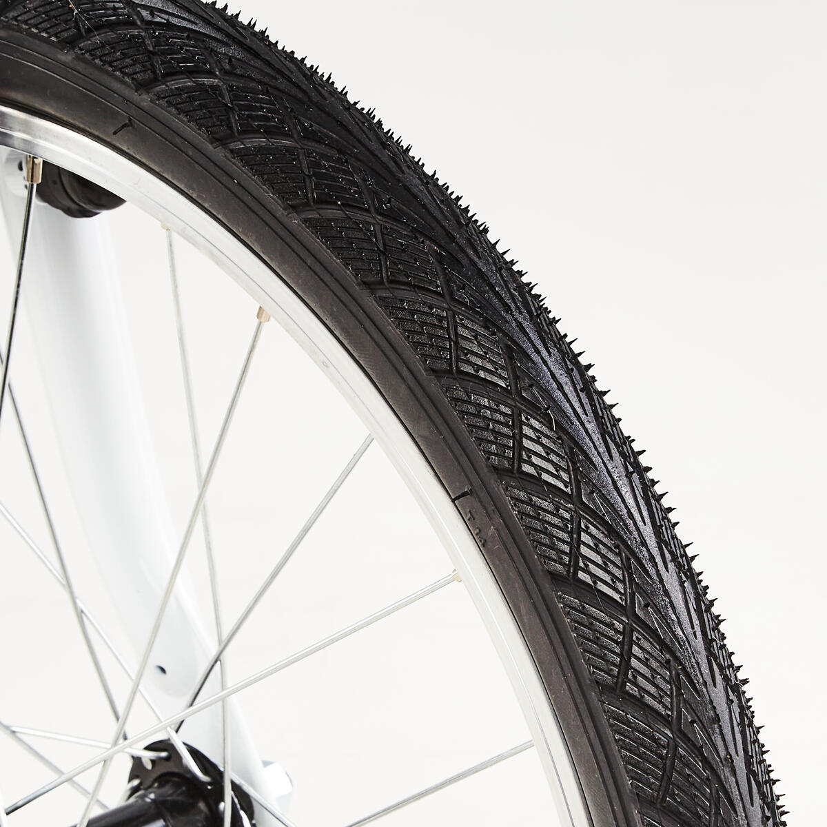 Pour découvrir les premières balades à vélo sur tous les chemins, ce VTC enfant 20 pouces est robuste et simple d'utilisation (1 seule vitesse)