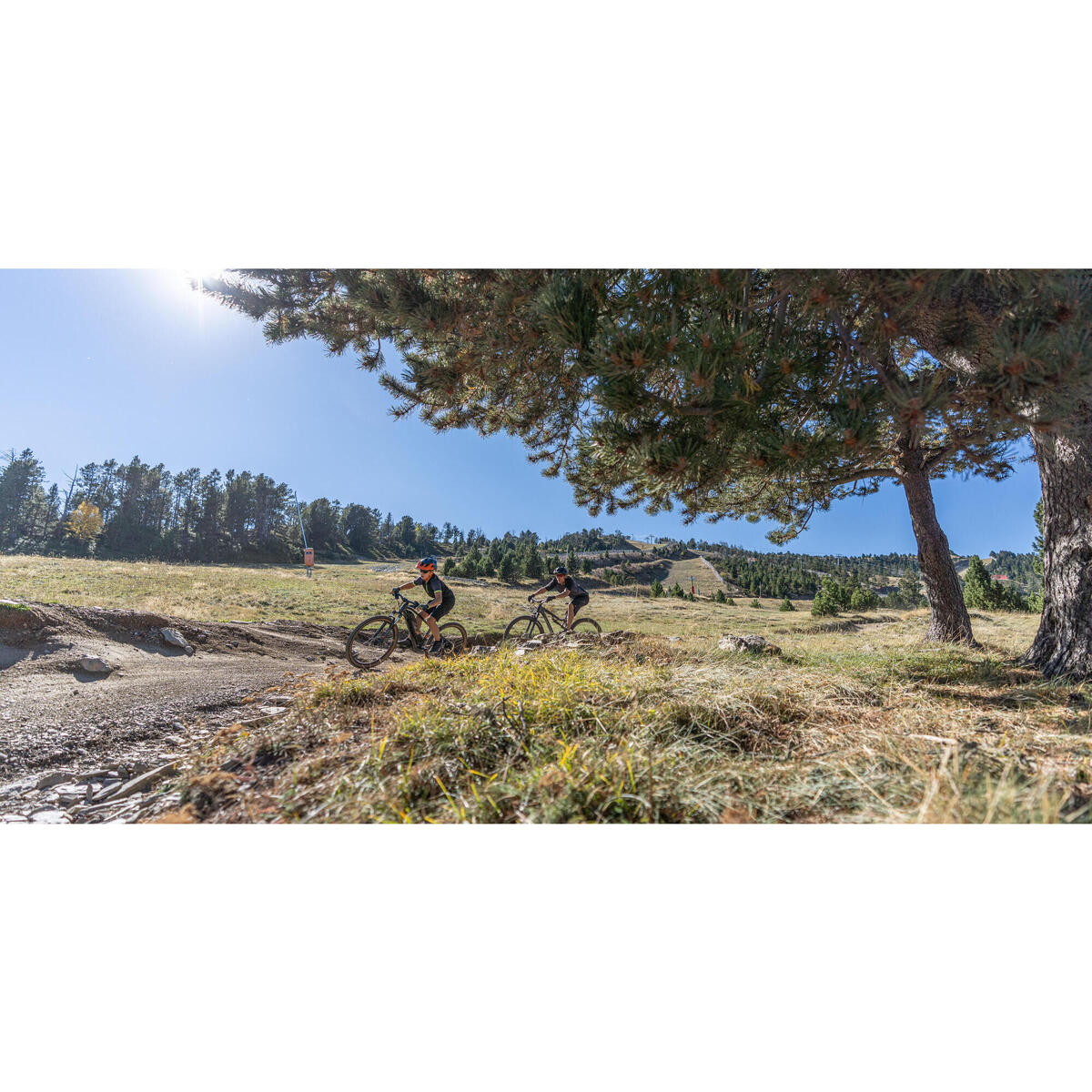 Les pneus spécifiques B'TWIN en 26 X 2.10 TANWALL assurent accroche et confort lors des randonnées VTT.