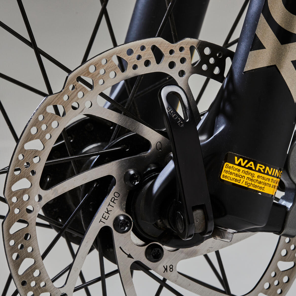 Affrontez les nouveaux obstacles (racines, cailloux, pierres,...) en toute sérénité grâce au débattement de la fourche avant.