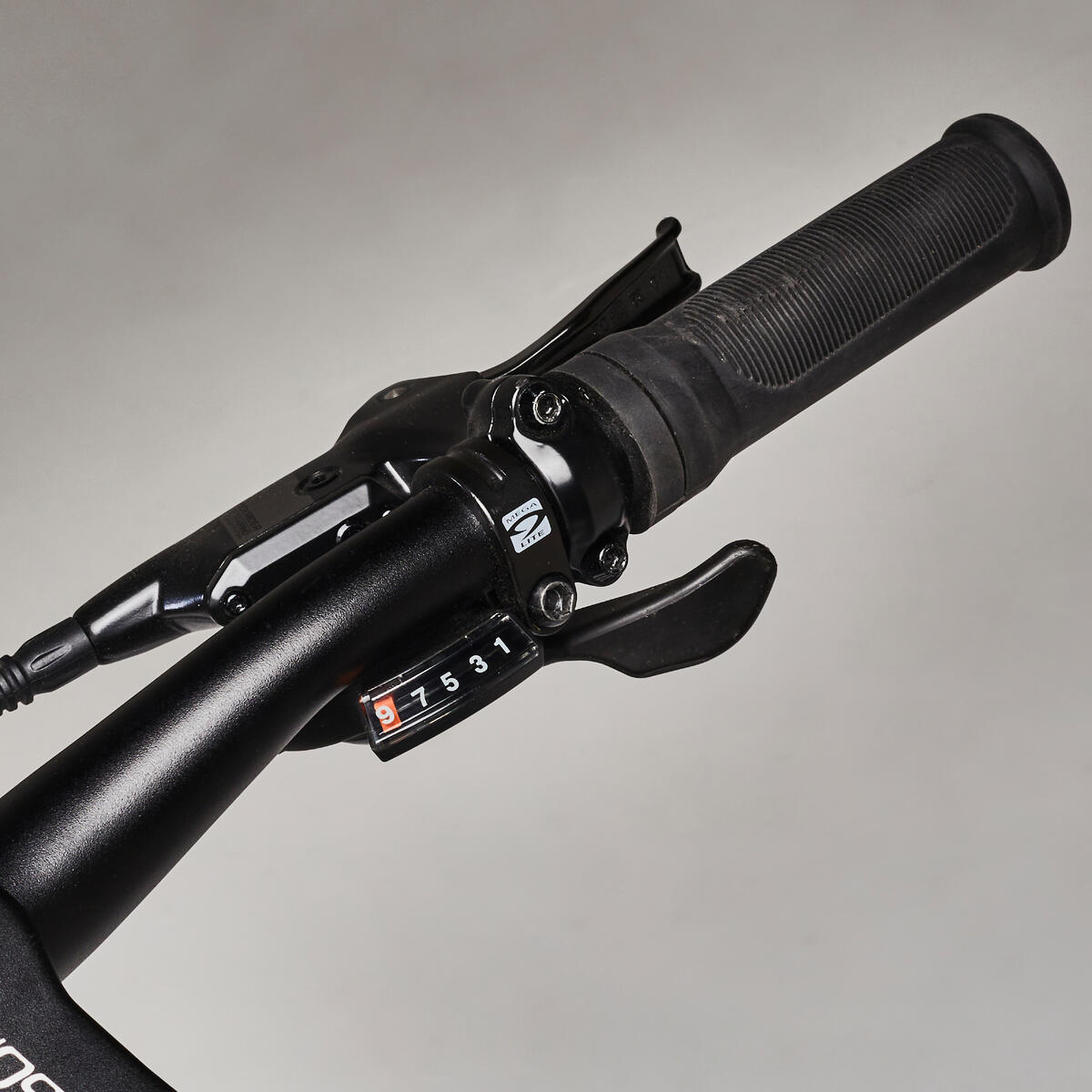 Ce vélo est équipé d'une commande de vitesses qui se gère avec le pouce et l'index, pour passer rapidement les 9 vitesses. Le monoplateau en 36 dents et la cassette en 11-36 facilite le passage des vitesses et permet de couvrir les parcours avec dénivelé. Avec une seule commande à gérer, vous restez concentré sur votre trajectoire.